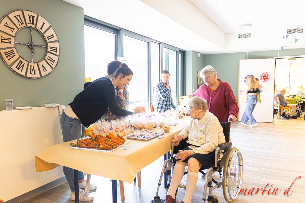 Vente d’objets décoratifs (fabriqués pour certains pas les résidents du home et de l’accueil de jour), plantes aromatiques, gourmandises, confitures, pâtisseries, chocolats,… Tout avait été savamment bien pensé à l’approche de la fête de Pâques !