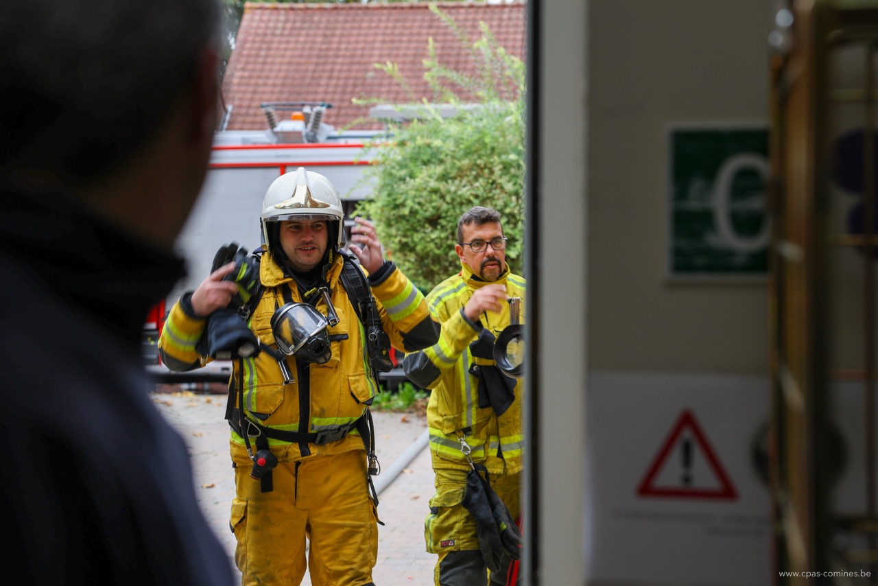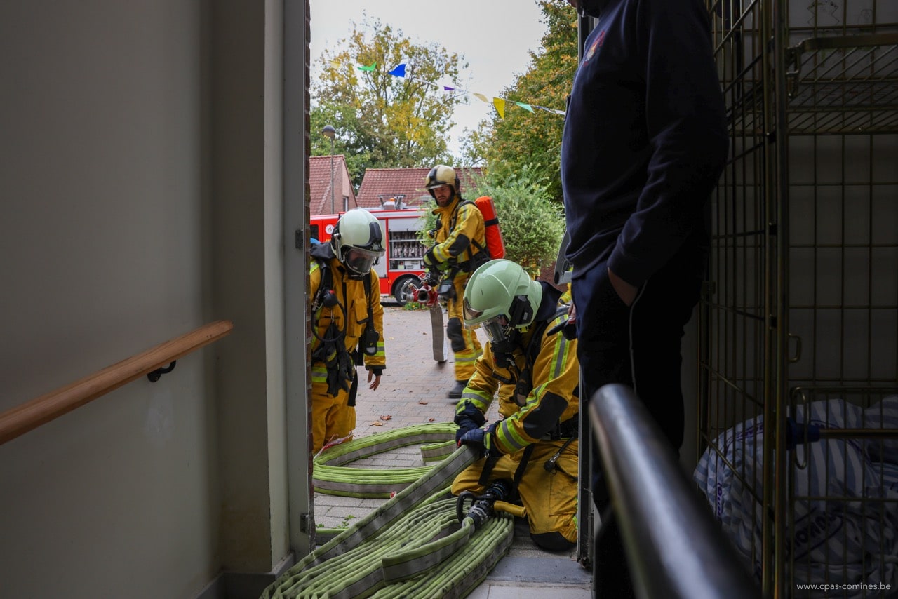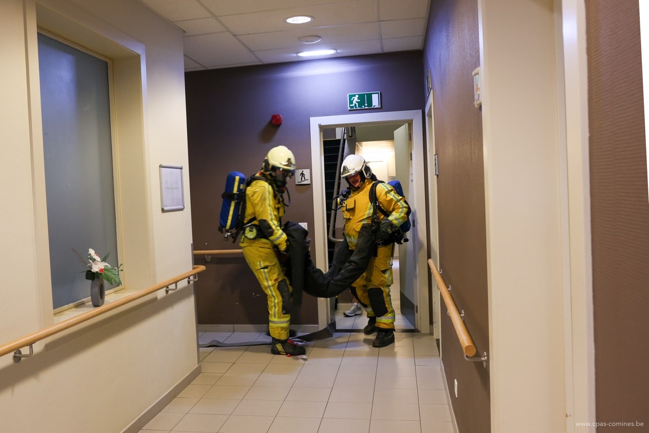En plus de permettre aux hommes du feu de s’entraîner à diverses manœuvres dans un environnement particulier qu’est une maison de repos, cet exercice offre également à notre personnel l’occasion de mesurer l’importance des gestes posés à chaque étape : de l’appel au 112 à l’accueil des secours, en passant par la transmission des informations essentielles à l’arrivée des pompiers.