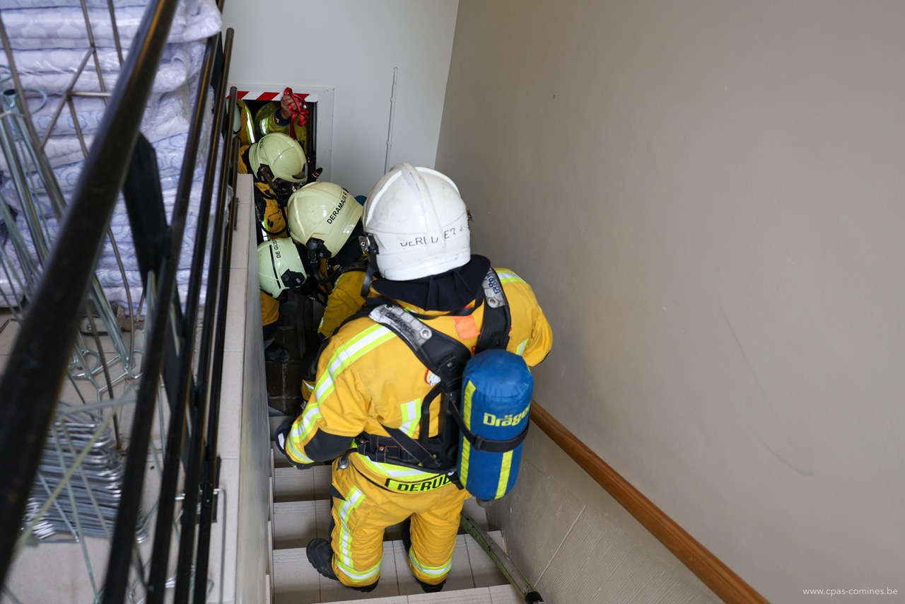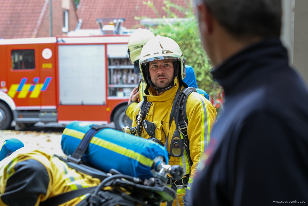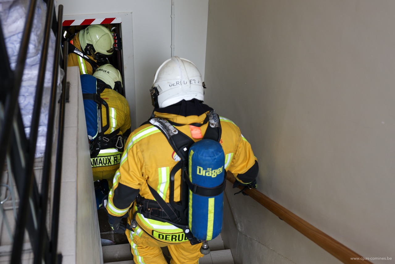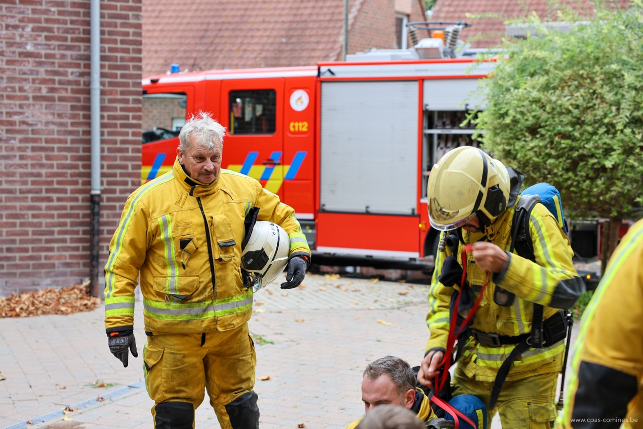 En plus de permettre aux hommes du feu de s’entraîner à diverses manœuvres dans un environnement particulier qu’est une maison de repos, cet exercice offre également à notre personnel l’occasion de mesurer l’importance des gestes posés à chaque étape : de l’appel au 112 à l’accueil des secours, en passant par la transmission des informations essentielles à l’arrivée des pompiers.
