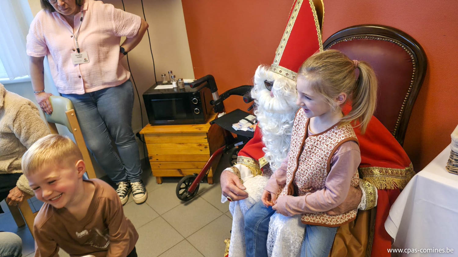 Le mercredi 26 novembre 2025, Saint-Nicolas est venu à la rencontre des habitants du Home La Châtellenie, entourés de leurs familles.