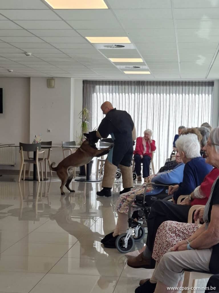 Le 16 septembre 2025, à l’occasion de la Semaine de la Mobilité, les résidents du Home Paul Demade ont assisté à une démonstration impressionnante de maître-chien. Deux agents, accompagnés de leur chien, ont présenté différentes techniques de dressage, d’obéissance, ainsi qu’une démonstration d’intervention et d’attaque contrôlée. 🐾👮♂️ Un moment spectaculaire, riche en découvertes et en